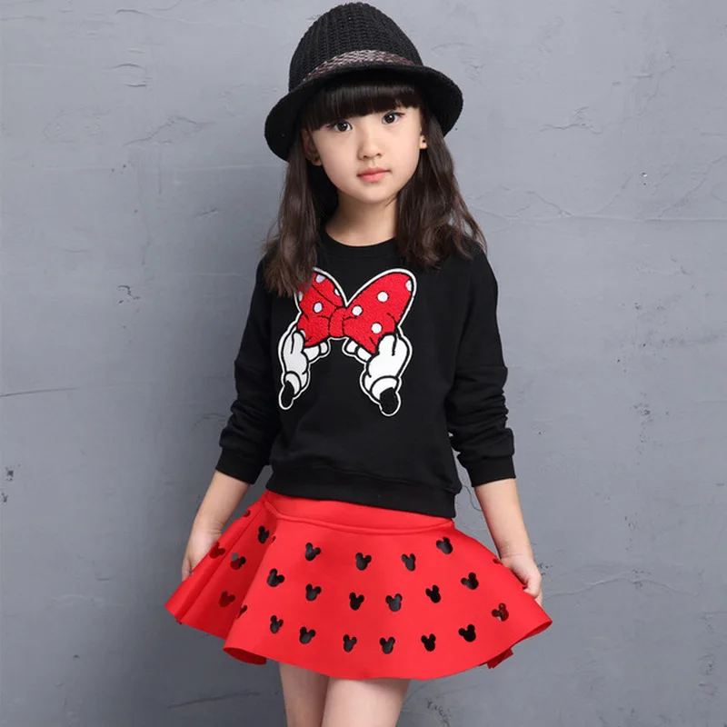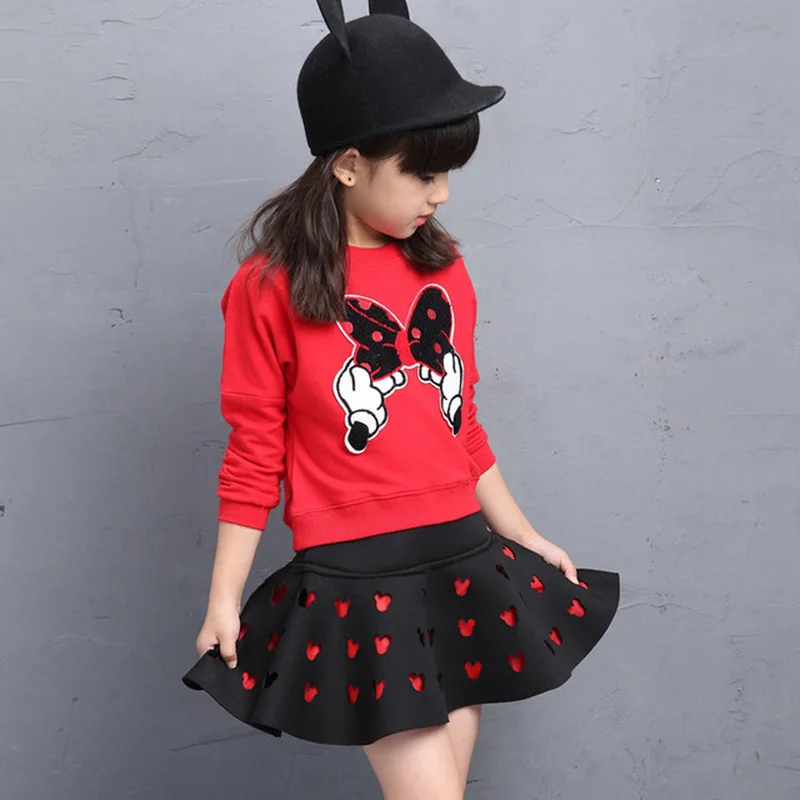 Addition Information of Spring Fall Girls Clothing Set Long Sleeve Cartoon Shirts Heart Skirt 2pcs Kids Clothes for Girl To